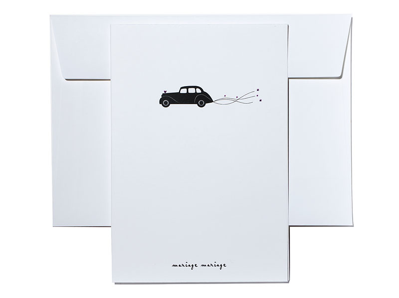 Oldtimer Hochzeitseinladungen im französischem Stil mit C5 Umschlag aus Premiumpapier von GMUND. Personalisierbar, ab 20 Einladungskarten.