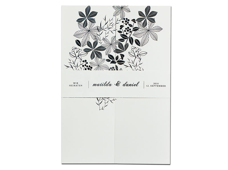 Design Hochzeitspapeterie:Mit seiner mannigfaltigen Natur, seinen wärmenden Sonnenstrahlen und der erfrischenden Luft ist der Herbst eine wundervolle Zeit, sich zu trauen. Die Autumn-Serie ist liebevoll mit Kastanienblättern geschmückt und dennoch schlicht. Ein stimmungsvolles Gedicht auf der Rückseite rundet auf Wunsch den romantischen Gesamteindruck ab. Das edle schwarz-weiß Design wirkt dabei so lebendig, das man die unzähligen Herbsttöne erahnen kann. Eine elegante kalligrafische Schrift vereint mit einer klassischen Serifenschrift verleihen dieser Serie zusätzlich eine feierliche Note.Produktdetails Banderole:Die edle Banderole gibt der Kartenserie das gewisse Etwas und hält alle Bestandteile zusammen. Mit einem doppelseitigen Klebepunkt werden die Enden miteinander verbunden. Das crèmefarbene Feinstpapier ist ein gestrichenes, kräftiges und dennoch mattes Papier mit angenehmer Haptik und höchster Detailtreue. Bei der Abbildung links handelt es sich um einen beispielhaften Text, den Sie im nächsten Schritt individuell gestalten können. Satzarbeiten sind im Preis inbegriffen. Die Banderole ist 2-fach vorgefalzt und die Klebepunkte (im Preis inbegriffen) werden beigelegt.
